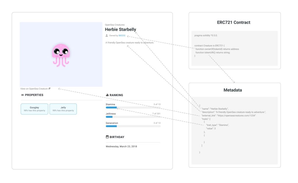 Although the decentralized NFTs exist, most NFT marketplaces, such as Nifty Gateway, SuperRare, Rarible, Opensea, etc., utilize some centralized components like traditional online stores, along with some decentralized components. The metadata field of an NFT generally stores the data. And metadata is a shorthand representation of the data to which they refer. Therefore, we need a simple and efficient way to help users view the metadata of the NFT.